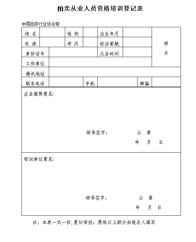 拍賣從業(yè)人員培訓(xùn)登記表