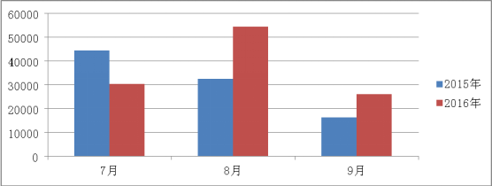 據(jù)全國(guó)拍賣行業(yè)管理信息系統(tǒng)顯示,截止9月底,全區(qū)共有拍賣企業(yè)144家,其中分公司4家。從業(yè)人員710人,拍賣師157人。2016年第三季度,拍賣成交276場(chǎng),同比增長(zhǎng)5% ,流拍171場(chǎng),同步下降25%,實(shí)現(xiàn)成交額110808.62,同比增長(zhǎng)18.49%,傭金收入1017.30,同比下降21%。上繳稅收1.73萬(wàn)元,同比增長(zhǎng)11%。利潤(rùn)383.93,同比增長(zhǎng)92%。 一、2016年三季度經(jīng)營(yíng)情況 根據(jù)經(jīng)驗(yàn)統(tǒng)計(jì)數(shù)據(jù)情況分析顯示:2016年第三季度與2015年同期相比除7月份下降30%,其余8月、9月分別上漲80%、67%。 2016年第三季度成交額情況表 | 單位:萬(wàn)元 | | 7月 | 8月 | 9月 | 2015年 | 44524.71 | 32612.06 | 16382.61 | 2016年 | 30312.24 | 54431.76 | 26064.62 |